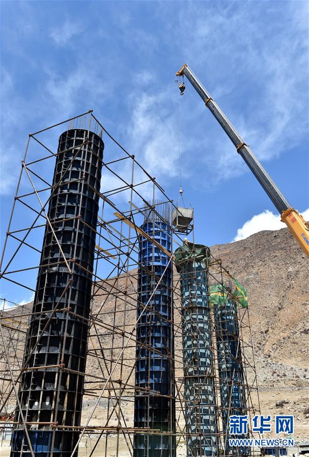 工作人員在拉薩至那曲高等級公路控制性工程羊八井峽谷施工(4月18日攝)。目前,西藏拉薩至那曲高等級公路控制性工程建設進展順利。 新華社記者 覺果 攝
