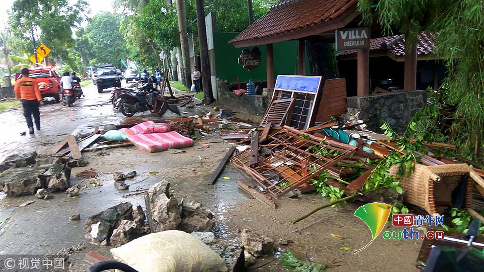 印尼海嘯遇難人數(shù)已升至62人 現(xiàn)場大量房屋倒塌