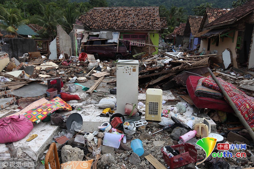 當(dāng)?shù)貢r(shí)間2018年12月24日,印度尼西亞萬丹省卡里塔,現(xiàn)場(chǎng)遍地廢墟,一片狼藉。22日夜間的一次海嘯襲擊了印度尼西亞爪哇島西海岸。印尼國家災(zāi)難機(jī)構(gòu)24日表示,印尼火山引發(fā)的海嘯造成的死亡人數(shù)已經(jīng)上升至373人,1000多人受傷。