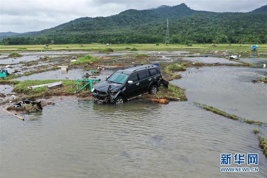 這是12月24日拍攝的印尼萬丹省一處被海嘯損毀的農(nóng)田。 印度尼西亞抗災(zāi)署發(fā)言人24日說,印尼西部巽他海峽海嘯死亡人數(shù)已經(jīng)上升至373人。 新華社記者 杜宇 攝