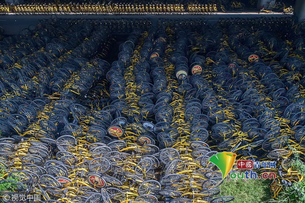 2018年8月24日,西安西咸新區(qū)。連霍高速橋下的ofo小黃車“墳場”。