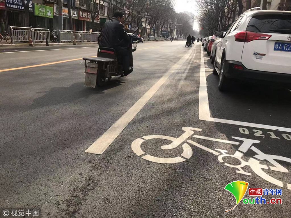 12月25日?qǐng)?bào)道,12月24日,鄭州市文化宮路有市民反映,新鋪好的文化宮路非機(jī)動(dòng)車(chē)道被剛劃的“停車(chē)位”擠得只有0.8米寬。原本2米多寬的非機(jī)動(dòng)車(chē)突然有汽車(chē)停放后,騎車(chē)經(jīng)過(guò)的行人只得被逼進(jìn)快車(chē)道通行,很不安全。