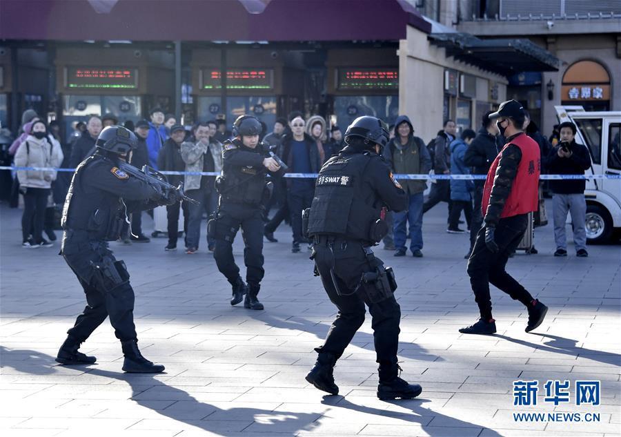 12月25日,市民觀看處置突發(fā)事件演練。 當(dāng)日,北京鐵路公安局、北京市公安局相關(guān)單位、北京火車站、北京急救中心等單位參加的春運安保演習(xí)在北京火車站廣場舉行。演習(xí)包括處置突發(fā)事件、急救、治安維持、現(xiàn)場疏導(dǎo)等項目,保障春運期間旅客平安出行。 新華社記者 李欣 攝