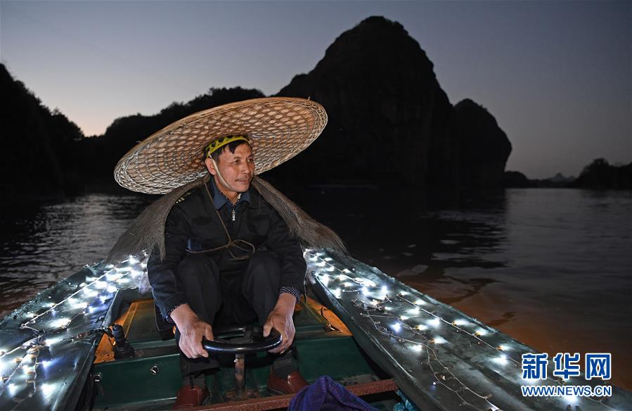 舒港發(fā)在龍虎山景區(qū)駕駛小船參與實(shí)景演出《尋夢龍虎山》(10月27日攝)。