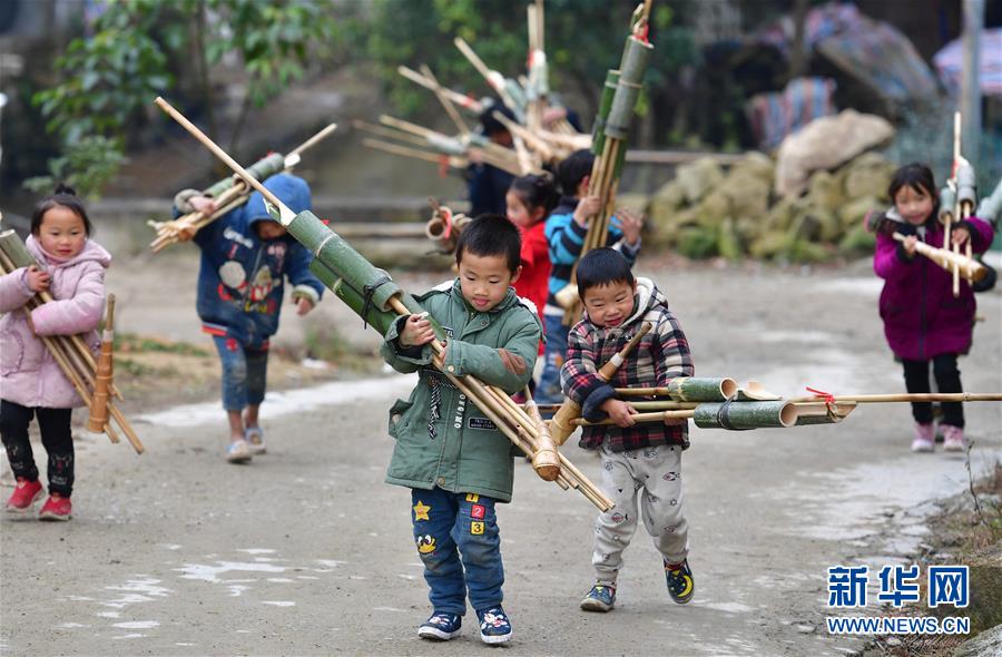 孩子們?cè)诎徇\(yùn)剛剛購(gòu)買的蘆笙(12月24日攝)。