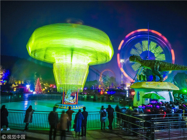 2017年12月31日,南京銀杏湖樂園跨年夜,燈光璀璨。