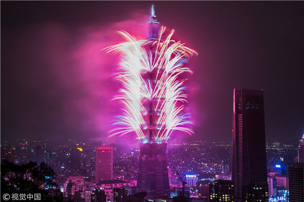 2018年1月1日,臺北101大樓燃放焰火迎接新年的到來。