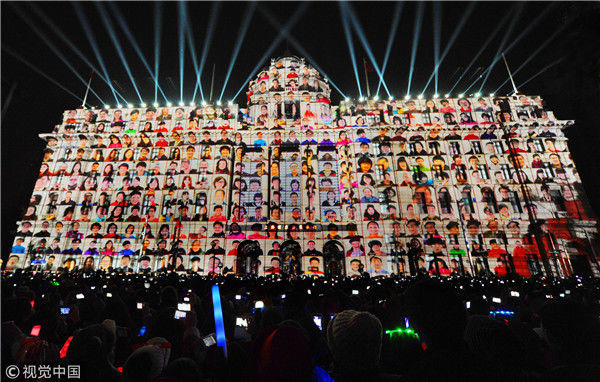 2012年12月31日,上海,“2013上海迎新年倒計(jì)時(shí)晚會(huì)”當(dāng)晚在黃浦江畔的外灘金融廣場(chǎng)上舉行。最大亮點(diǎn)的4D燈光秀綜合運(yùn)用計(jì)算機(jī)圖形技術(shù)、燈光投影技術(shù)、激光技術(shù)等多種技術(shù)表現(xiàn)手段,利用最新的科技和最新的藝術(shù)形式作為載體,讓百年建筑活過(guò)來(lái)“跳舞”。