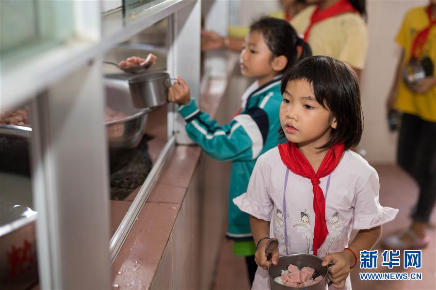 在云南省金平苗族瑤族傣族自治縣者米鄉(xiāng)中心小學(xué),孩子們?cè)谑程么蝻?,?zhǔn)備吃營養(yǎng)晚餐(11月13日攝)。新華社記者 胡超 攝