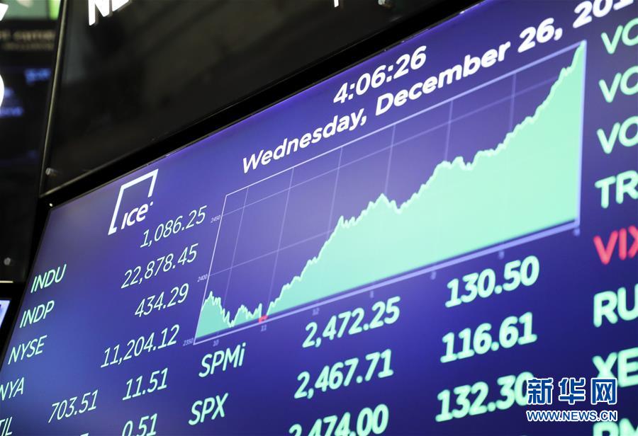 12月26日,美國紐約證券交易所的電子屏顯示當天交易信息。新華社記者 王迎 攝