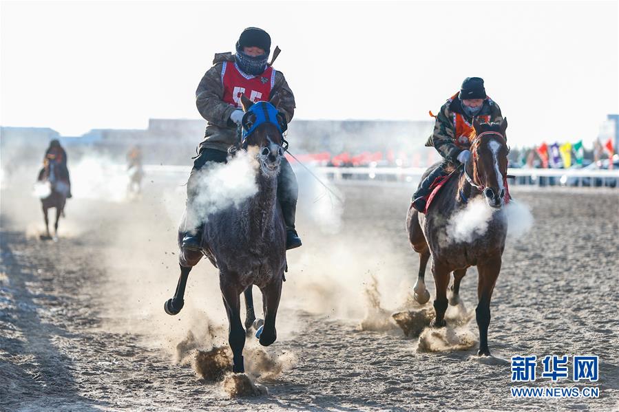 12月26日,牧民在進行賽馬。 當日,內(nèi)蒙古冰雪那達慕系列活動在呼倫貝爾市鄂溫克旗繼續(xù)進行,牧民歡聚一堂,參加各種賽事和趣味項目。 新華社記者 虞東升 攝