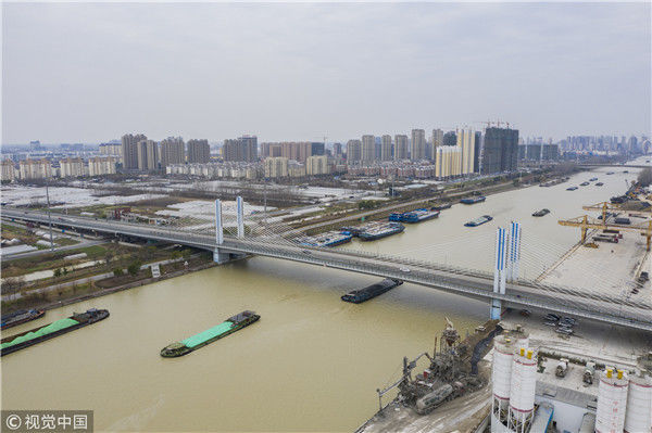 航拍京杭古運(yùn)河冬景