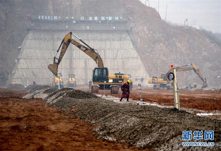 12月27日,工作人員和大型機(jī)械在前坪水庫(kù)大壩上施工。目前,被國(guó)務(wù)院列為172項(xiàng)節(jié)水供水重大水利工程之一的前坪水庫(kù)主體工程建設(shè)進(jìn)度已超八成。該水庫(kù)位于河南省汝陽(yáng)縣前坪村,是一座以防洪為主,兼具供水、灌溉、發(fā)電功能的大型水利樞紐工程。新華社記者 李安 攝