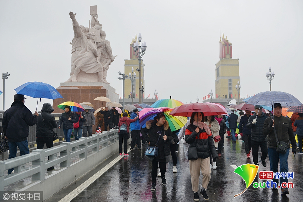 人們在橋上和橋堡處,邊走邊看、不時的駐足拍照和合影,感受全新“整容”后煥然一新的南京長江大橋。