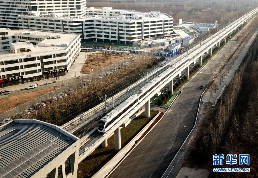 這是2018年12月29日無人機拍攝的車輛通過濟南軌道交通1號線創(chuàng)新谷站。新華社記者朱崢攝