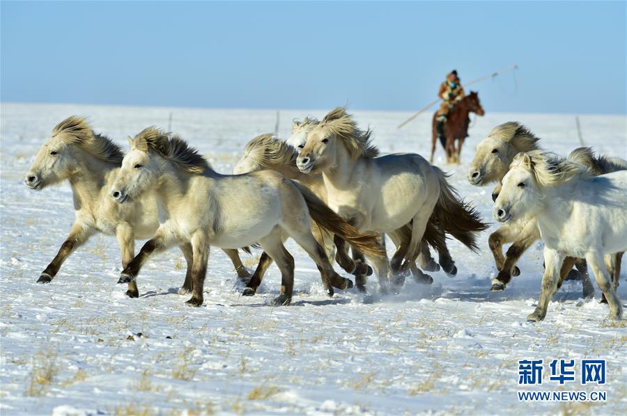 1月8日,牧民進(jìn)行套馬表演。 時(shí)下正值草原冬季旅游旺季,內(nèi)蒙古自治區(qū)西烏珠穆沁旗的牧民們在雪原上一展身手,為游客展現(xiàn)獨(dú)特的民族風(fēng)情。 新華社記者 鄒予 攝