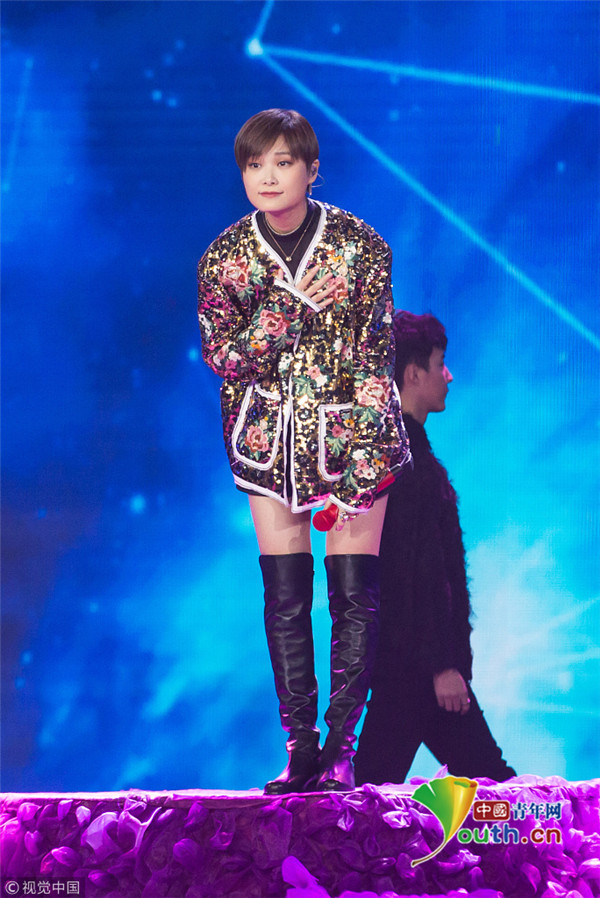 2019年1月8日晚,北京,李宇春亮相第17屆電影頻道電影百合獎(jiǎng)?lì)C獎(jiǎng)典禮,并演唱了一首《你是如此難以忘記》。當(dāng)晚的她一身閃花衣搭配黑色短褲長(zhǎng)靴,一雙長(zhǎng)腿吸睛十足,盡顯女人柔美和帥氣的雙重魅力,她手放胸前鞠躬向觀眾致意,謙遜有禮。
