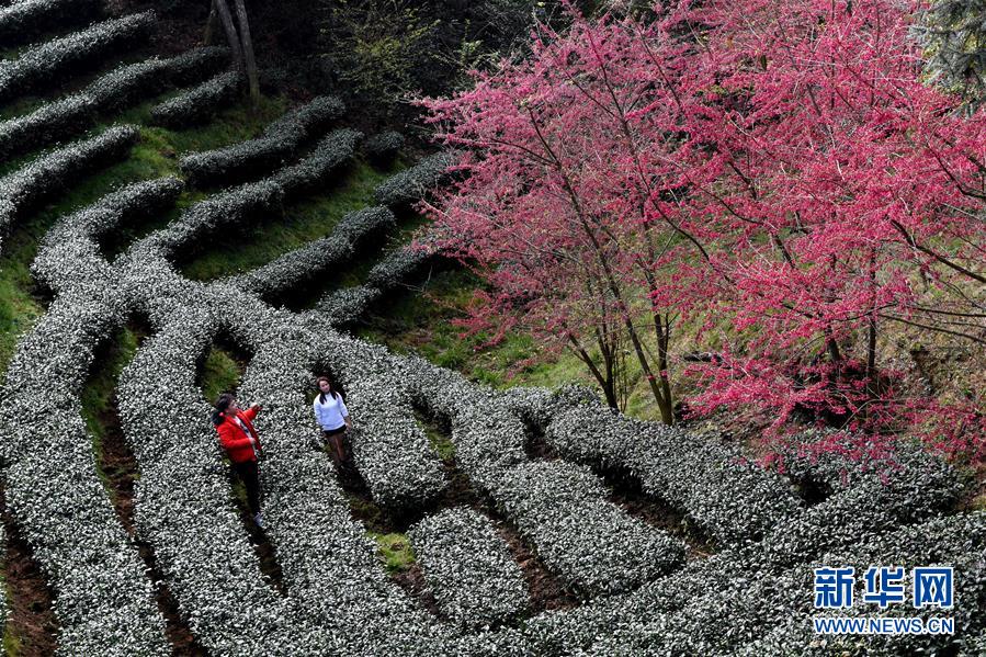 福建省連城縣賴(lài)源鄉(xiāng)黃宗村海拔1000余米的高山茶園面積約千畝,園內(nèi)套種一萬(wàn)余棵櫻花樹(shù)。寒冬時(shí)節(jié),綻放的櫻花與綠色茶園相互映襯,宛如一幅田園畫(huà)卷。