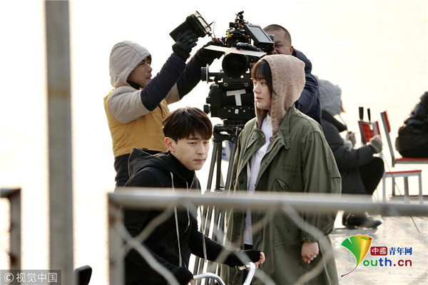 鄧倫馬思純北京后海拍新戲 寒風(fēng)中騎冰車超敬業(yè)