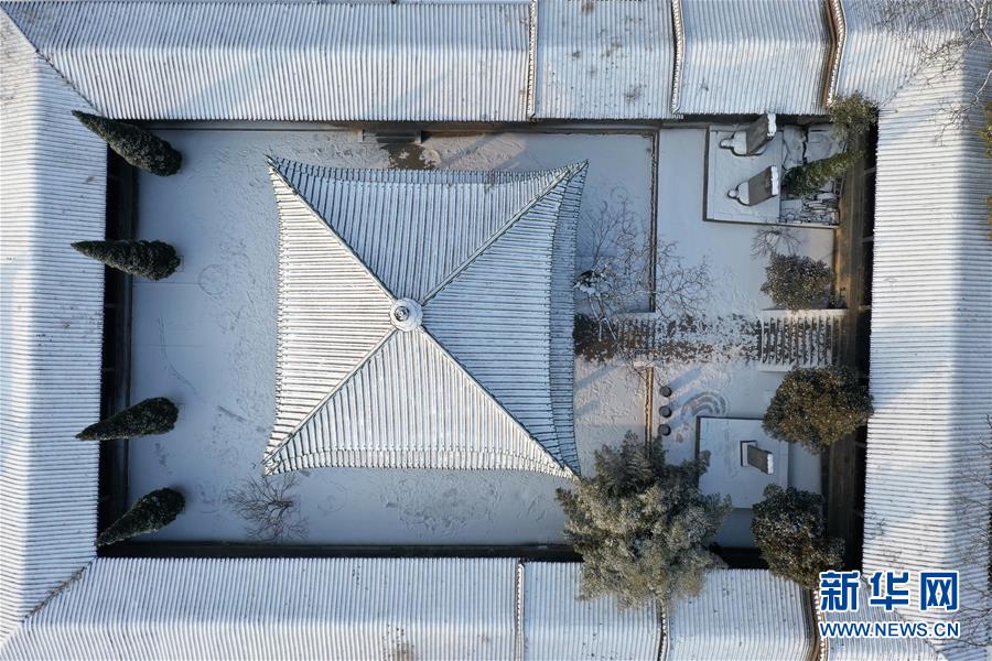 1月10日無人機拍攝的少林寺一景。當(dāng)日,雪后初霽,河南登封少林寺分外秀美。 新華社記者 馮大鵬 攝