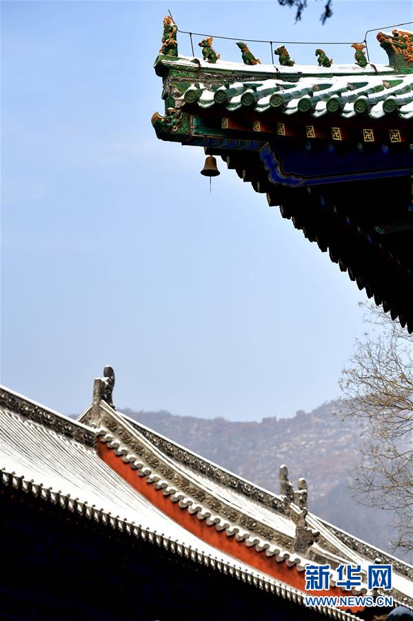 1月10日無人機(jī)拍攝的少林寺一景。當(dāng)日,雪后初霽,河南登封少林寺分外秀美。 新華社記者 馮大鵬 攝