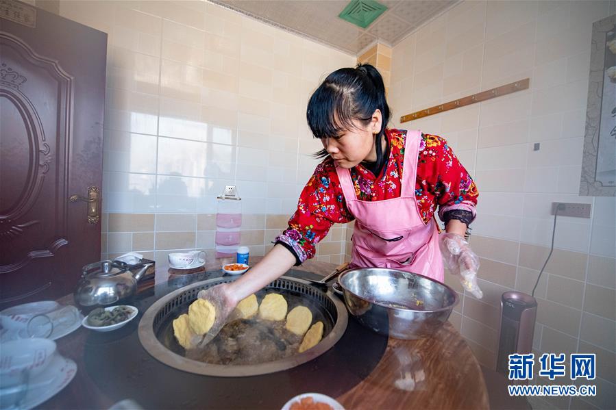 1月10日,在舒蘭市二合屯,農(nóng)家樂老板楊會(huì)為游客準(zhǔn)備東北特色菜肴。 新華社記者張楠攝