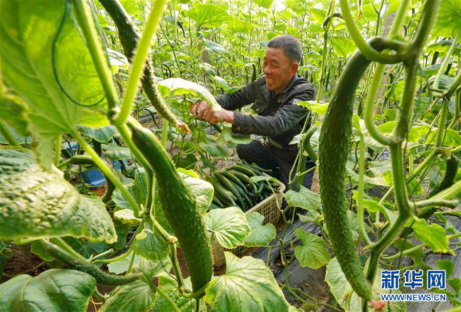 1月10日,唐山海港經(jīng)濟開發(fā)區(qū)王灘鎮(zhèn)東高村農(nóng)民在大棚內(nèi)采摘黃瓜。 河北省唐山海港經(jīng)濟開發(fā)區(qū)采取“合作社+產(chǎn)業(yè)基地+農(nóng)戶”模式,扶持當(dāng)?shù)胤N植戶規(guī)?;⒐叩忍厣a(chǎn)業(yè)生產(chǎn)基地,帶動農(nóng)民增收致富。 新華社記者楊世堯攝