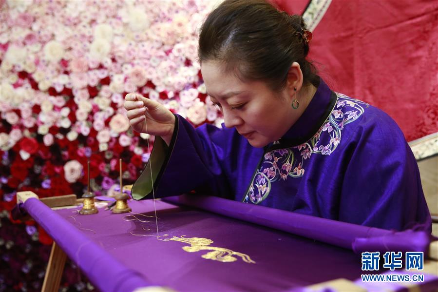 1月12日,在北京“碧泓云想”服裝設計工作室,高定服裝設計師畢紅在為中式服裝制作刺繡紋樣。畢紅設計的中式服裝以棉、麻、真絲等面料為主。春節(jié)來臨,其團隊加班加點為顧客趕制中式服裝。