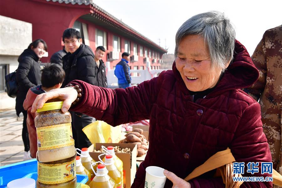 當(dāng)日,河南省魯山縣觀音寺鄉(xiāng)西桐樹(shù)莊村土特產(chǎn)年貨展銷活動(dòng)在河南魯山阿婆寨風(fēng)景區(qū)門口舉行。近年來(lái),依托鄉(xiāng)村旅游的不斷發(fā)展,不少貧困山村特產(chǎn)走出大山。