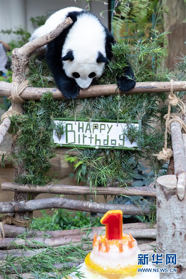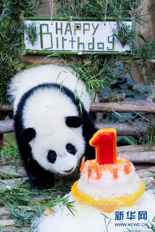 馬來西亞國家動(dòng)物園14日為中國旅馬大熊貓“興興”和“靚靚”所生的第二只雌性大熊貓寶寶慶祝一周歲生日。