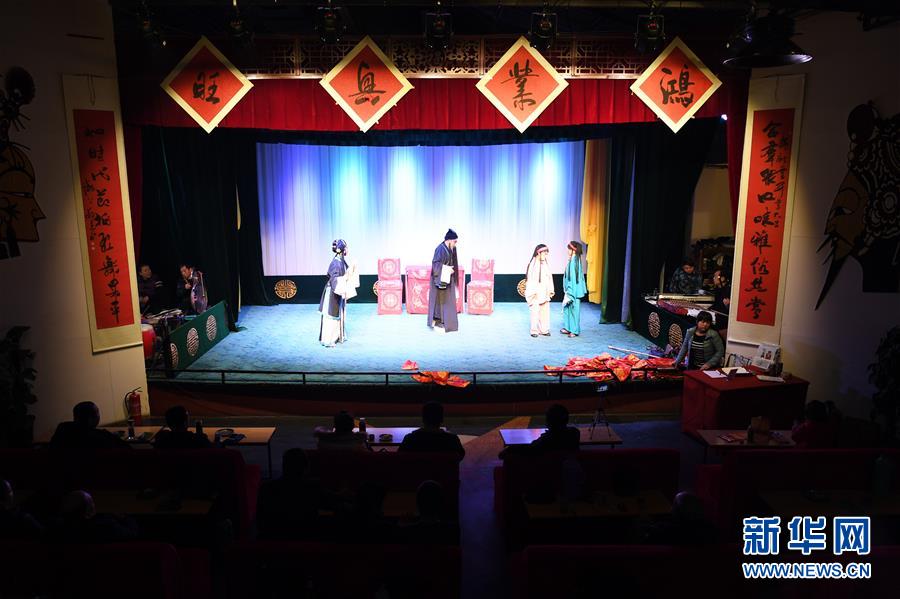 在甘肅省蘭州市城關(guān)區(qū),一家創(chuàng)辦不久的戲曲“小劇場”——頤融堂戲曲體驗館里每天都會唱響嘹亮激昂的秦腔折子戲。在這里戲曲愛好者只需要消費5元錢喝杯清茶就可以看一天表演,也可登臺獻(xiàn)藝,以戲會友。因價格低廉、戲曲豐富,“小劇場”深受戲曲愛好者的喜愛。 新華社記者 范培珅 攝
