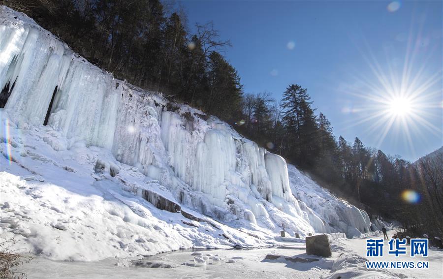 這是在吉林省長白縣十五道溝望天鵝景區(qū)拍攝的冰瀑景觀(1月3日攝)。新華社記者林宏攝
