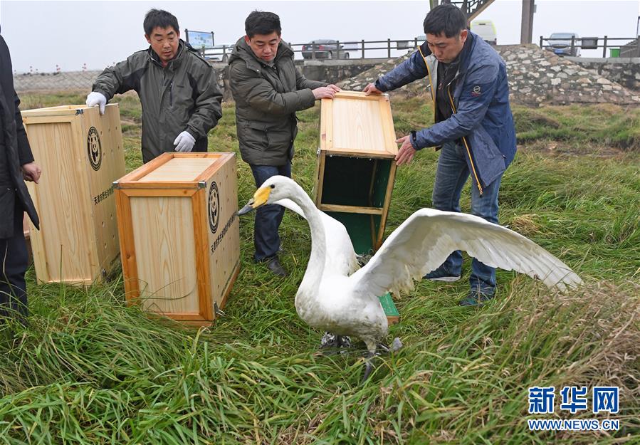 1月14日,工作人員正在放飛候鳥。 新華社記者 萬象 攝