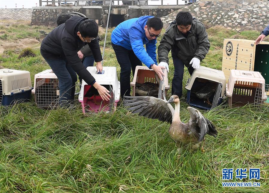 1月14日,工作人員正在放飛候鳥。 新華社記者 萬(wàn)象 攝