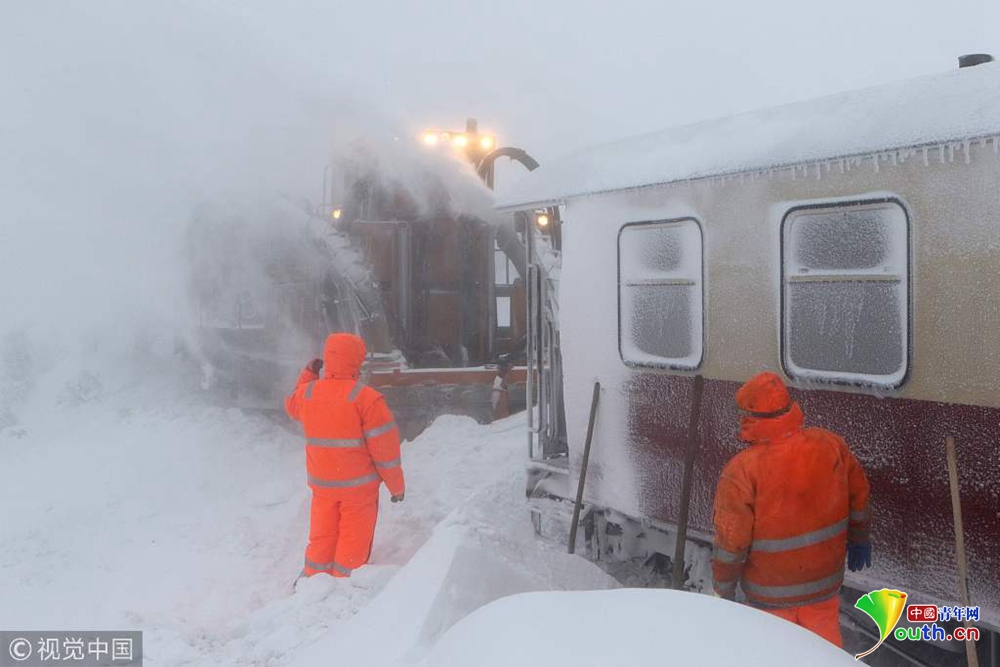 奧地利暴風雪持續(xù) 公交車站被積雪掩埋