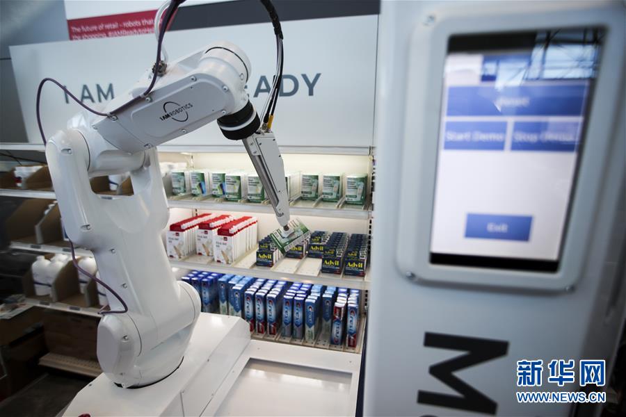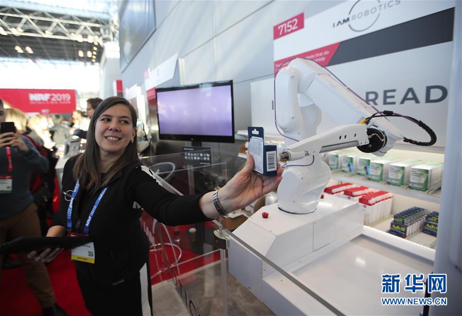 1月14日,在美國紐約舉行的全國零售商聯(lián)合會年度大會的“創(chuàng)新實(shí)驗(yàn)室”展廳,自動取貨機(jī)器人根據(jù)顧客的要求抓取商品。 美國全國零售商聯(lián)合會年度大會于1月13日至15日在紐約舉行,許多來自世界各地的展商帶來使用新技術(shù)開發(fā)出的軟硬件產(chǎn)品,向觀眾展示未來零售業(yè)的新愿景。 新華社記者 王迎 攝