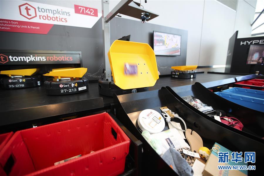 1月14日,在美國紐約舉行的全國零售商聯(lián)合會年度大會的“創(chuàng)新實(shí)驗(yàn)室”展廳,自動分揀機(jī)器人在工作。 美國全國零售商聯(lián)合會年度大會于1月13日至15日在紐約舉行,許多來自世界各地的展商帶來使用新技術(shù)開發(fā)出的軟硬件產(chǎn)品,向觀眾展示未來零售業(yè)的新愿景。 新華社記者 王迎 攝