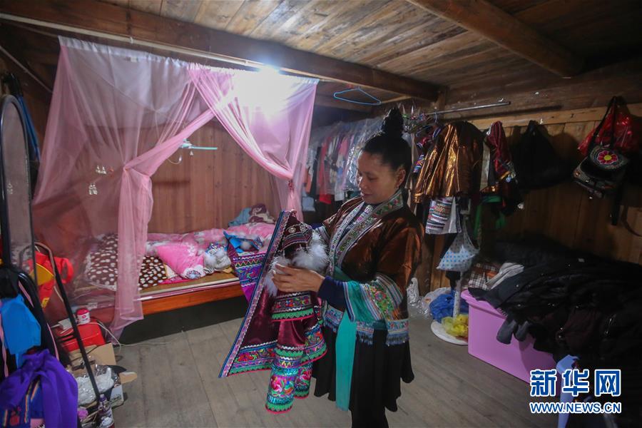 貧困戶住進(jìn)“復(fù)原”的房子,保持了熟悉的生活生產(chǎn)習(xí)慣,生活質(zhì)量大幅提高,并在參與景區(qū)演出、田園管理等工作中獲得穩(wěn)定收入。夢(mèng)嗚苗寨計(jì)劃一共搬入100戶貧困戶,目前已完成12戶42名建檔立卡貧困人員的搬遷工作。 新華社記者 陳君清 攝