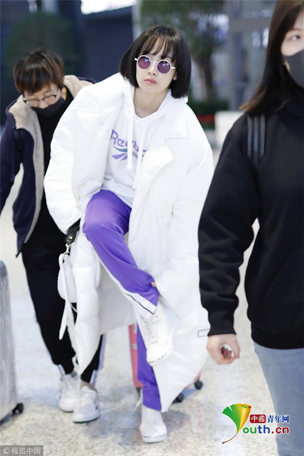 1月15日,上海,宋茜現(xiàn)身機場。她身穿白色羽絨服搭配紫色運動褲造型清爽有型,梳著齊耳短發(fā)秒變妹妹頭,可愛吸睛。抬腿扯褲腿動作呆萌,難道是秋褲沒穿好,要扯一下,這動作也是非常接地氣了。