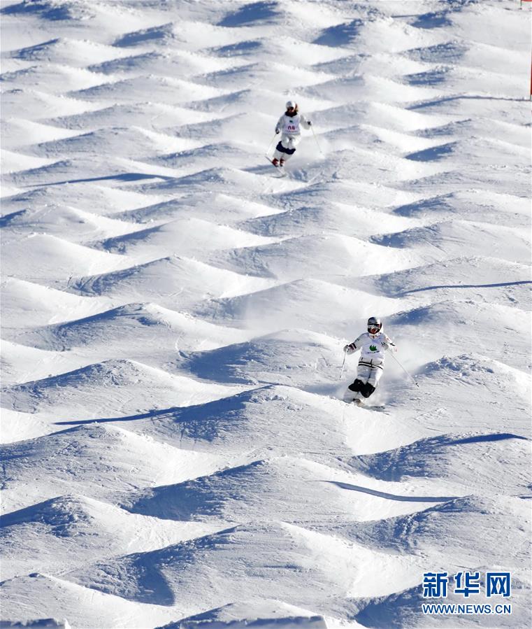 這是運(yùn)動(dòng)員在張家口市崇禮區(qū)太舞滑雪場參加自由式滑雪雪上技巧世界杯比賽(2018年12月16日攝)。