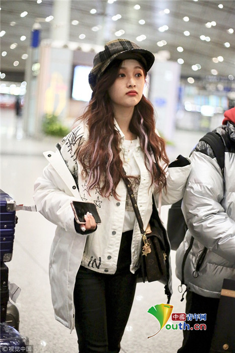 2019年1月17日,北京,吳宣儀現(xiàn)身機場。當(dāng)晚她不懼低溫輕裝亮相提前過春天,青春裝扮甜美又時尚。吳宣儀側(cè)顏精致紅唇吸睛,還被抓拍到撅嘴賣萌一臉無辜的表情。