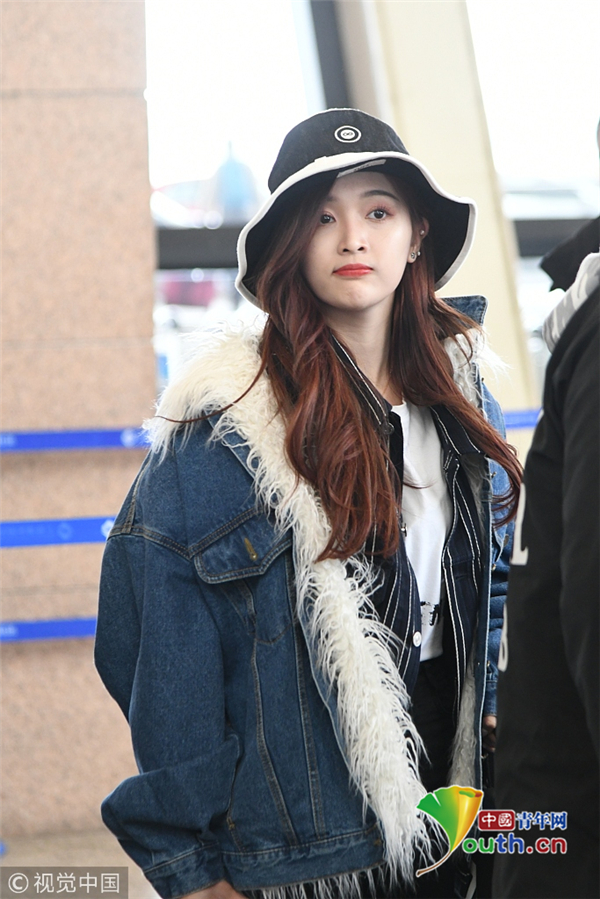 2月2日,上海,吳宣儀頭戴帽子身穿一襲牛仔服現(xiàn)身機(jī)場(chǎng) 。她自提大包回家過年 ,獲粉絲拜年祝福 ,吐舌狂賣萌。