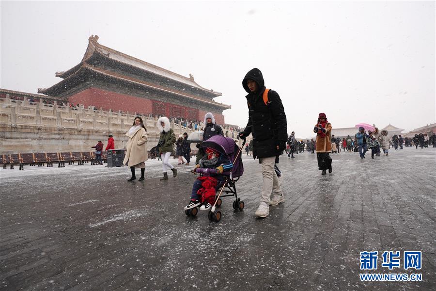 2月14日,游客在雪中游覽北京故宮。 當日,北京降雪,大批游人來到故宮游覽賞雪。 新華社記者 李欣 攝