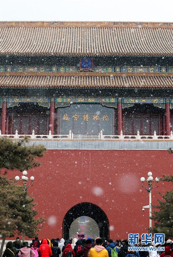 2月14日,游客在雪中游覽北京故宮。 當日,北京降雪,大批游人來到故宮游覽賞雪。 新華社記者 張傳奇 攝