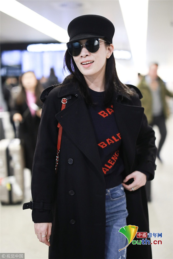 2019年2月28日,上海,佘詩曼現(xiàn)身機場。她頭戴禮帽,身穿黑色大衣走路帶風氣場強,單手托腮甜笑瞬間暖人心。