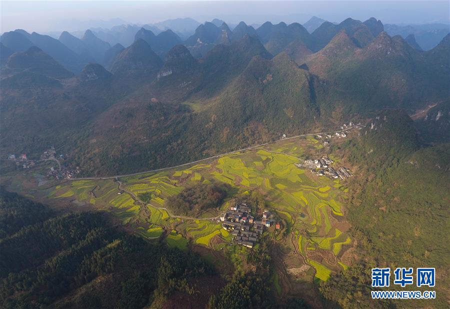 廣西融安縣東起鄉(xiāng)長(zhǎng)豐村的田園春色(3月10日無(wú)人機(jī)拍攝)。 近日,隨著氣溫持續(xù)回升,廣西融安縣境內(nèi)的油菜花開(kāi)放,春意盎然。 新華社記者 黃孝邦 攝