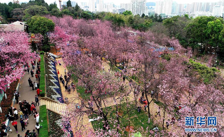 昆明櫻花盛開 游人紛至沓來