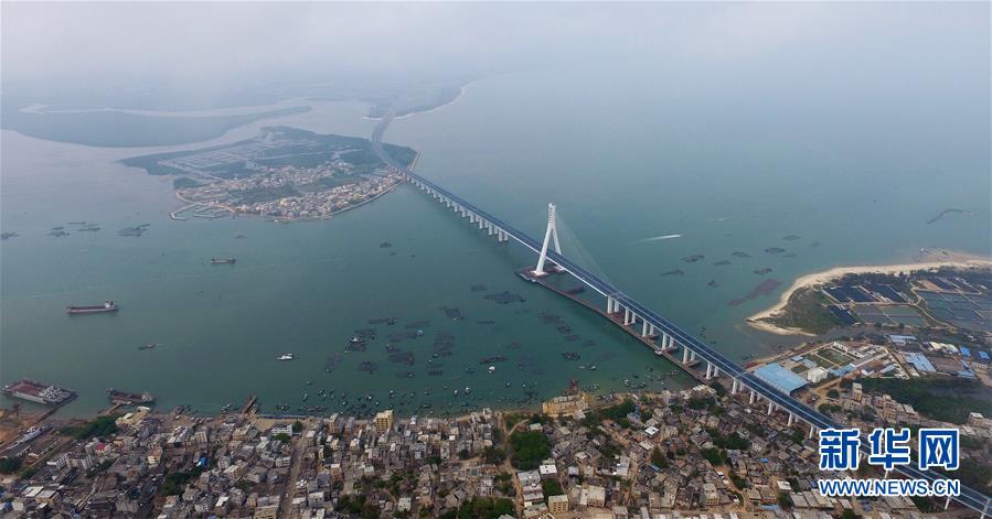 這是3月18日無人機拍攝的海南海文大橋。3月18日,中國首座跨越地震活動斷層的跨海大橋——海南海文大橋建成通車。海文大橋(原名鋪前大橋)連接??谑醒葚S鎮(zhèn)和文昌市鋪前鎮(zhèn),全長5.597公里,其中跨海大橋長約3.959公里。大橋通車后,從??诘轿牟伹版?zhèn)的路程將由原來的1小時30分鐘縮短至約20分鐘。 新華社記者郭程攝