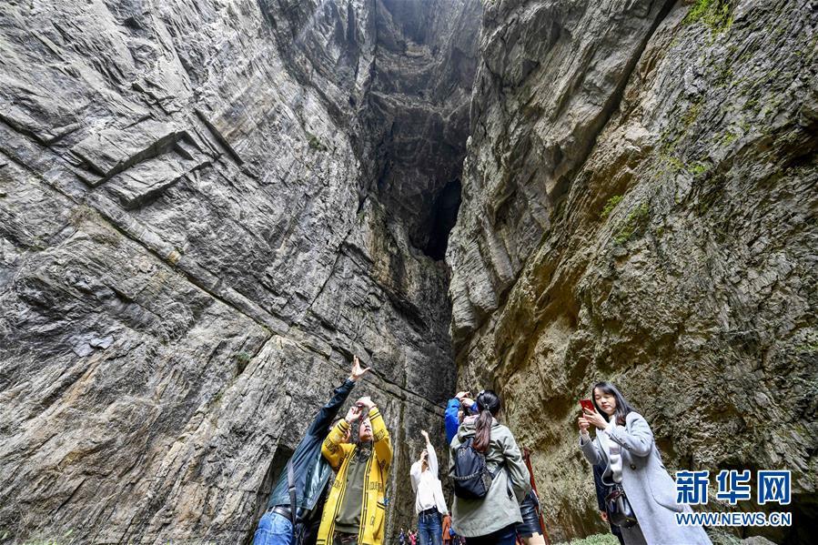游客在天生三橋景區(qū)游覽(3月27日攝)。 隨著天氣轉(zhuǎn)暖,重慶武隆天生三橋景區(qū)風(fēng)景如畫,氣勢磅礴的天生石橋和綠意盎然的山林相映成趣,吸引眾多游客前來踏春賞景。 新華社記者劉潺攝