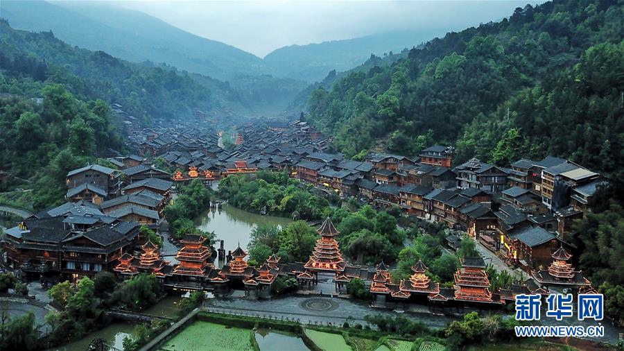 這是貴州省黔東南苗族侗族自治州黎平縣肇興侗寨(4月14日無人機拍攝)。 新華社記者 歐東衢 攝